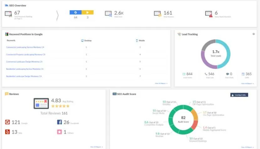 Stay in the driver’s seat of your digital marketing journey with our real-time reporting dashboard. This user-friendly interface allows you to monitor your keyword rankings, citation profiles, and online reputation at a glance. Plus, our transparent reporting means you can review all the work done by our team, ensuring you’re always in the loop and making data-driven decisions for your landscaping business.